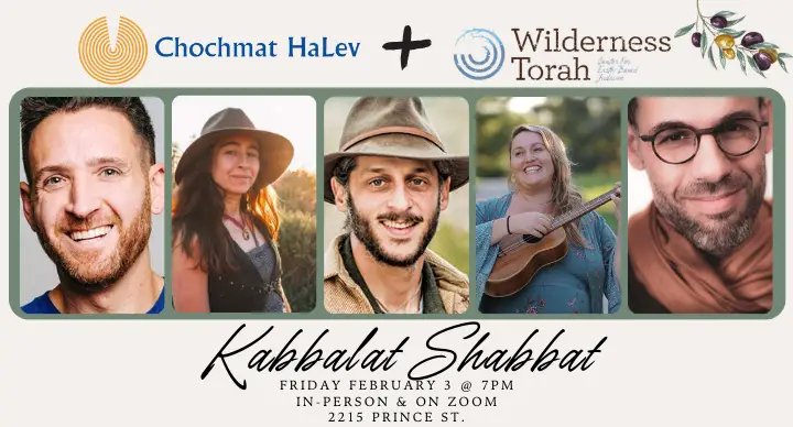 Wilderness Torah and Chochmat HaLev are joining forces to offer a celebratory Shabbat prayer service in honor of Tu B’Shevat, the Jewish new year for trees! Join Wilderness Torah’s Rabbi Zelig Golden and Melita Silberstein, together with musician Lauren Arrow and Chochmat HaLev’s Zvika Krieger and Lior Tsarfaty, for embodied prayer, soulful singing, ecstatic dancing, guided meditation, sharing of ancestral wisdom, and connection in intergenerational community.