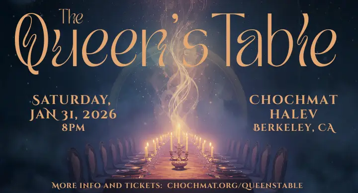 You are invited to a Saturday evening of ecstasy and enchantment at Chochmat HaLev’s modern take on the Hassidic tisch. Join us as we reimagine the rituals of the Jewish mystics by gathering around a long candlelit table, sacred teachers illuminating ancient wisdom, wordless nigun melodies, libations and delicacies late into the night.